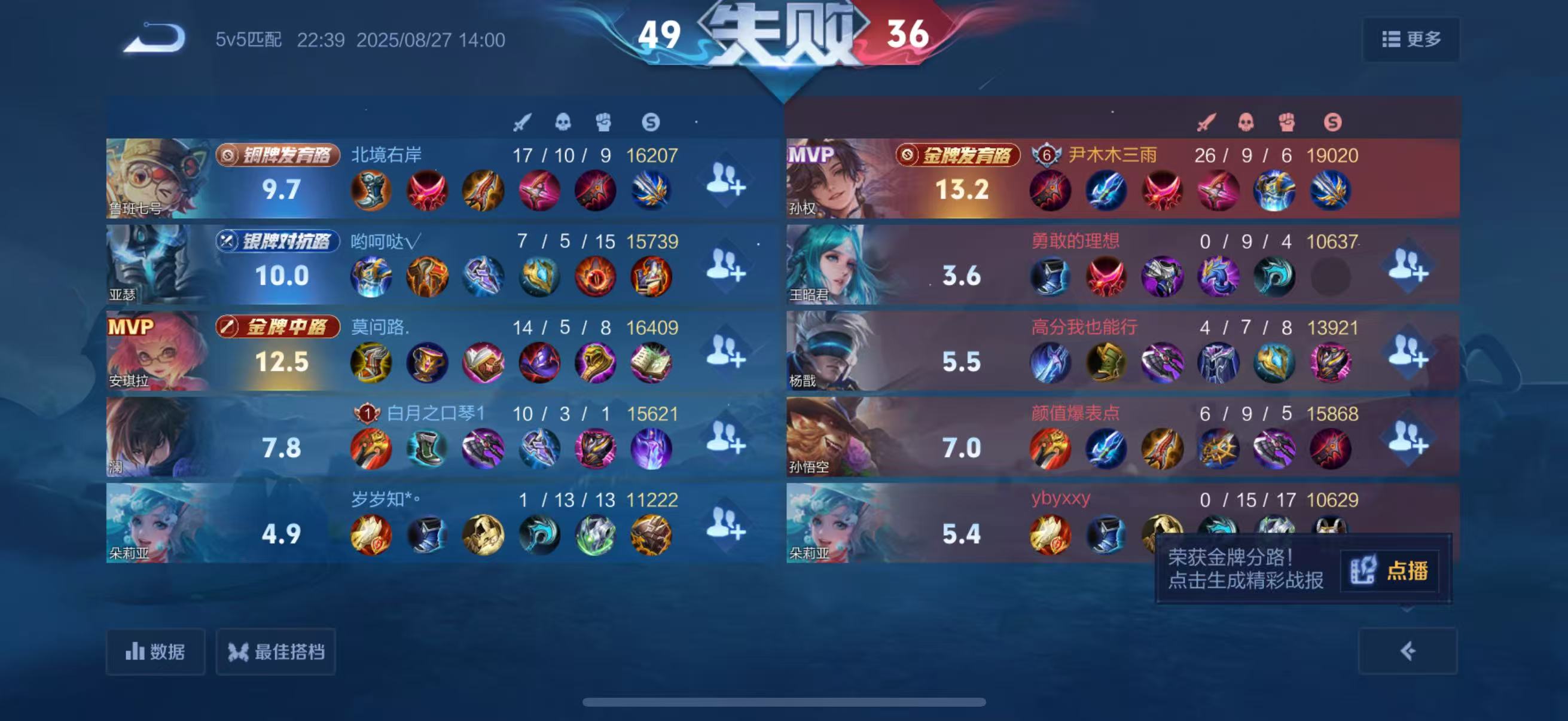·尹彬雨的游戏战绩·
